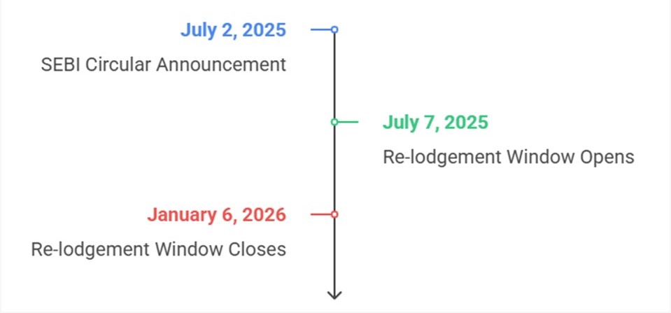 As per SEBI Circular SEBI/HO/MIRSD/MIRSD-PoD/P/CIR/2025/97 dated July 2, 2025, a special window has been opened for investors to re-lodge transfer requests of physical shares that were: